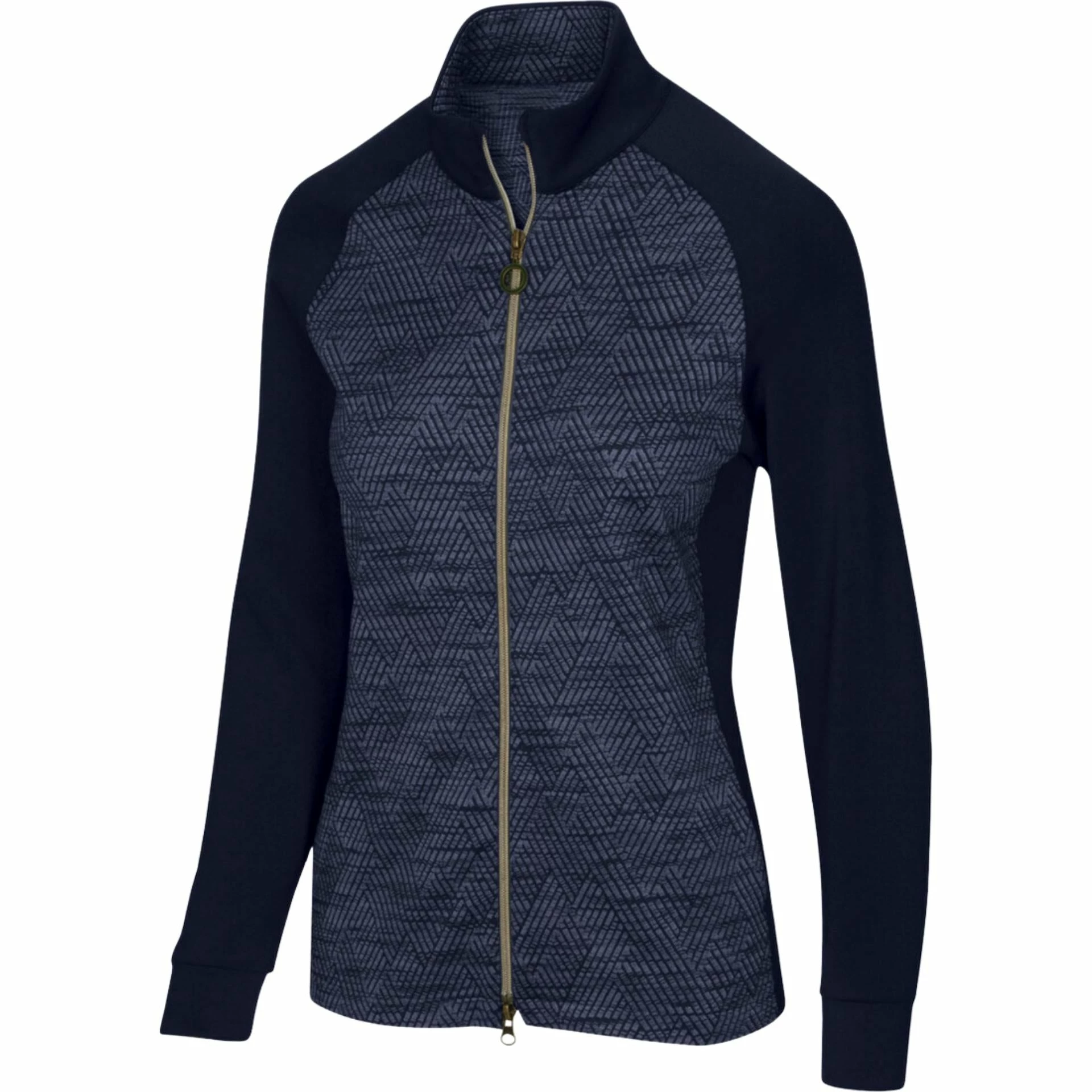The Herringbone Jacket from GN Women’s is an essential layering piece crafted from performance stretch 90% Polyester / 10% Spandex Jacquard fabric offering UPF 50+ sun protection. Design details include a mock collar, Herringbone pattern, 2-way zipper with ring pull, hidden snap pockets and a high-low hem.