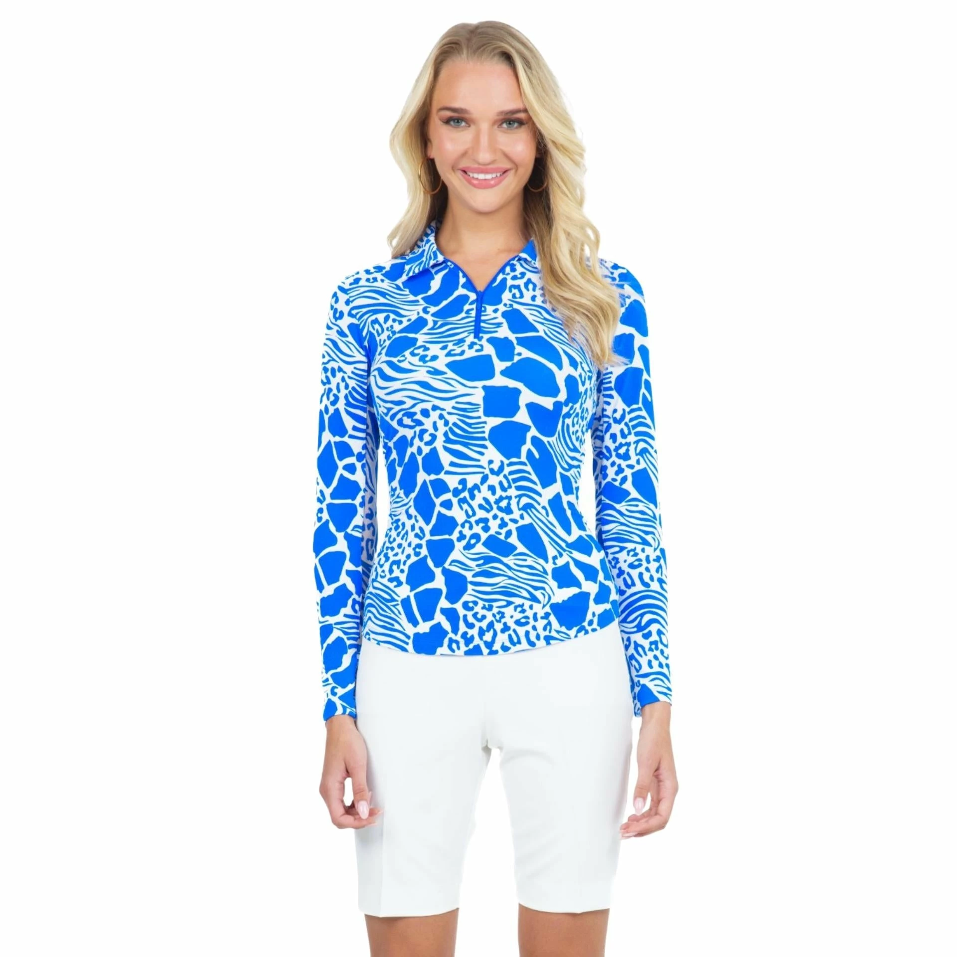 Ibkul Women’s Bianca Print Long Sleeve Polo – 41079