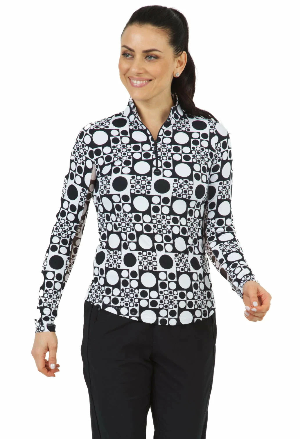 Ibkul Women’s Elise Print Long Sleeve Mock Neck Top – 10266