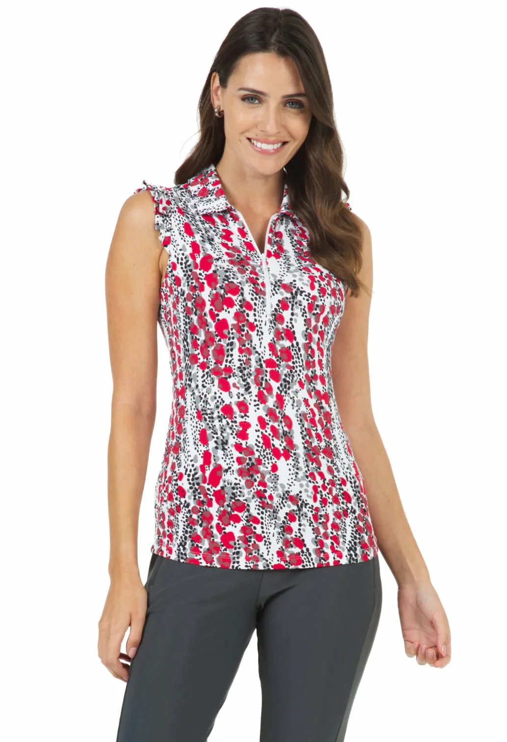 This top would have a little something up its sleeve if it had one � a ruffle for that feminine touch! It also has our patented ice�ilcooling technology to lower your temperature by up to five degrees. The super-soft, lightweight, UPF 50+ fabric keeps you protected from the sun’s rays, but you will still be the focus of every gaze.