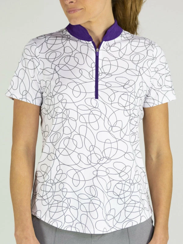 Short Sleeve Printed Mock – There’s no better feeling than stepping into the first tee box knowing you are the best dressed golfer in your group. If you are extremely comfortable in what you’re wearing also, you can multiply that by a million. This is what you can expect when you were the classical, yet abstract Sierra Swirl short sleeve printed mock. This golf top breathes, performs and catches the eye. Jofit’s fit is like no other. You will notice the slimming effects created by the long back body darts along with a shirttail hem that allows full swing control. The Sierra Swirl Mock is also available in a sleeveless style.